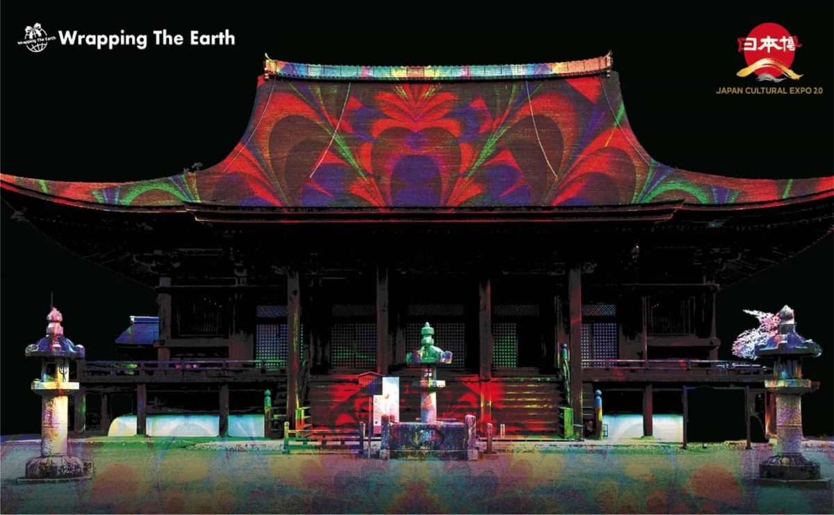 暗闇の内陣では、プロジェクションマッピングや和ろうそくを用いて仏の世界を創りだしています。