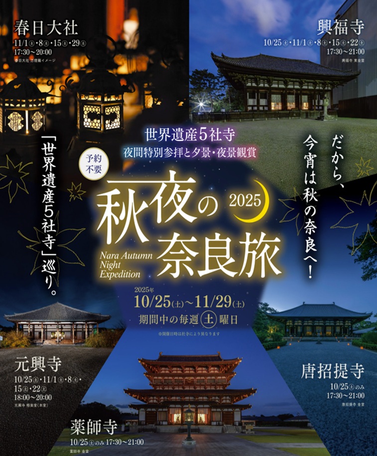 奈良市観光協会「秋夜の奈良旅2025」の一環として、下記日時に東金堂の夜間特別拝観を行います。